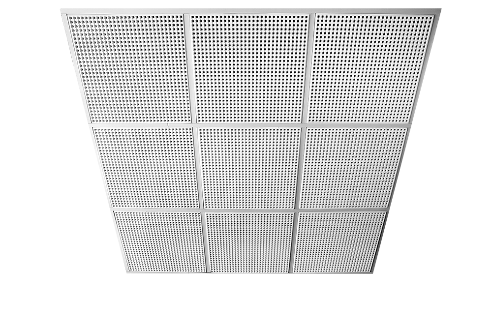 To be used in conjuction with exposed ceiling grid: 24 mm T Bar steel or aluminum 600 x 600 system.