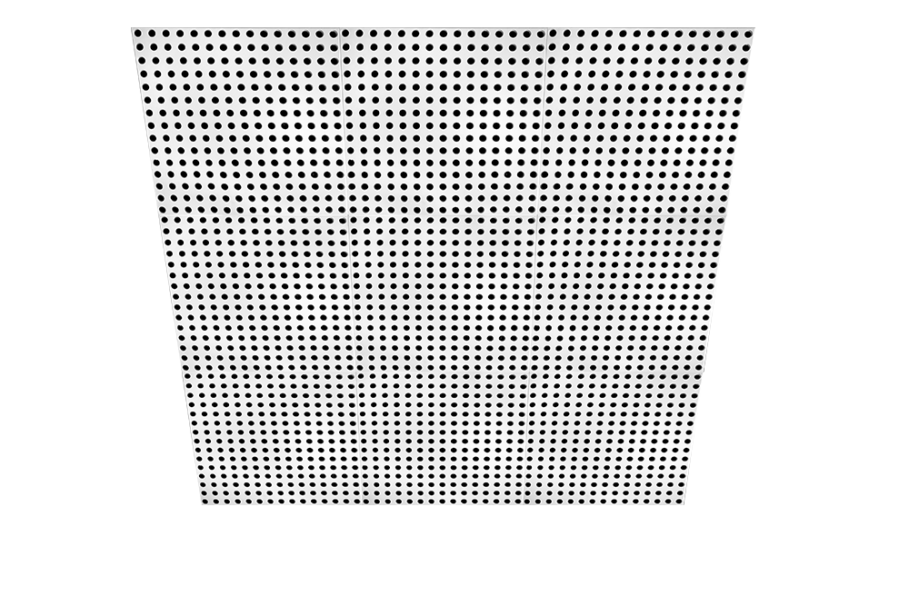 A plaster acoustic panel with circular perforations 45mm at 85mm centres, forming a continuous pattern when joined.