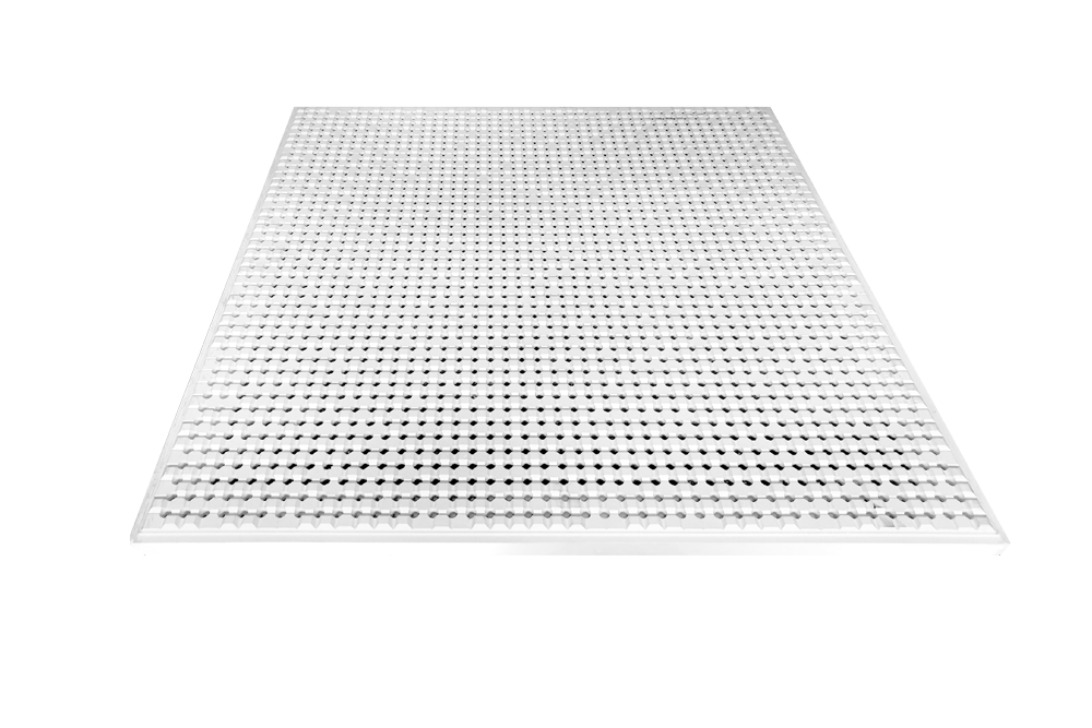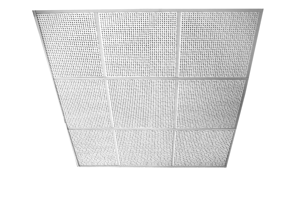 To be used in conjuction with exposed ceiling grid: 24 mm T Bar steel or aluminum 600 x 600 system.